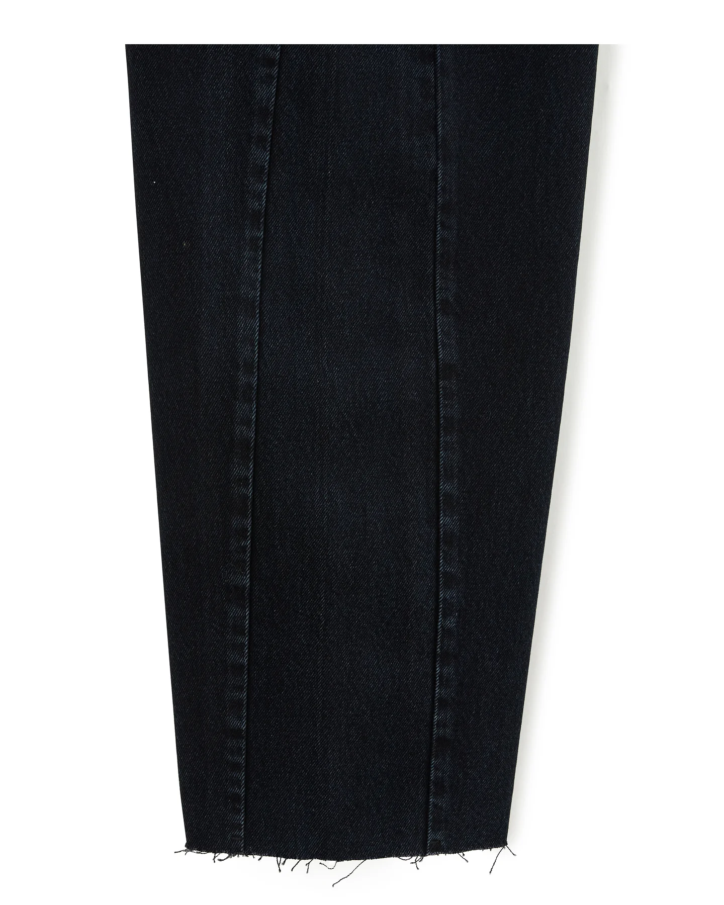• Noir vibrant avec du relief et de la profondeur, obtenu grâce à une technique de surteinture sur une base de denim indigo.