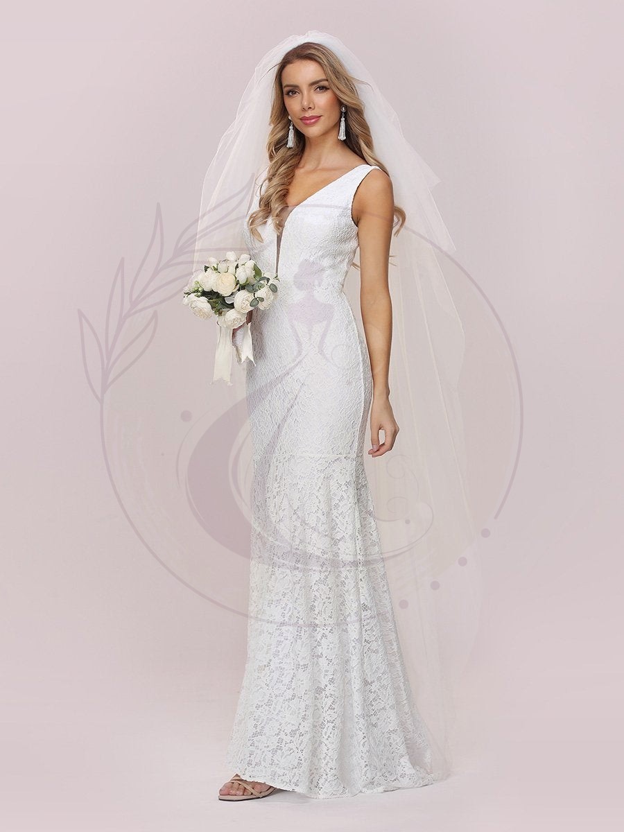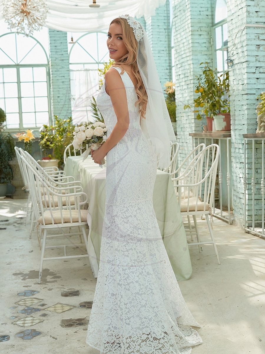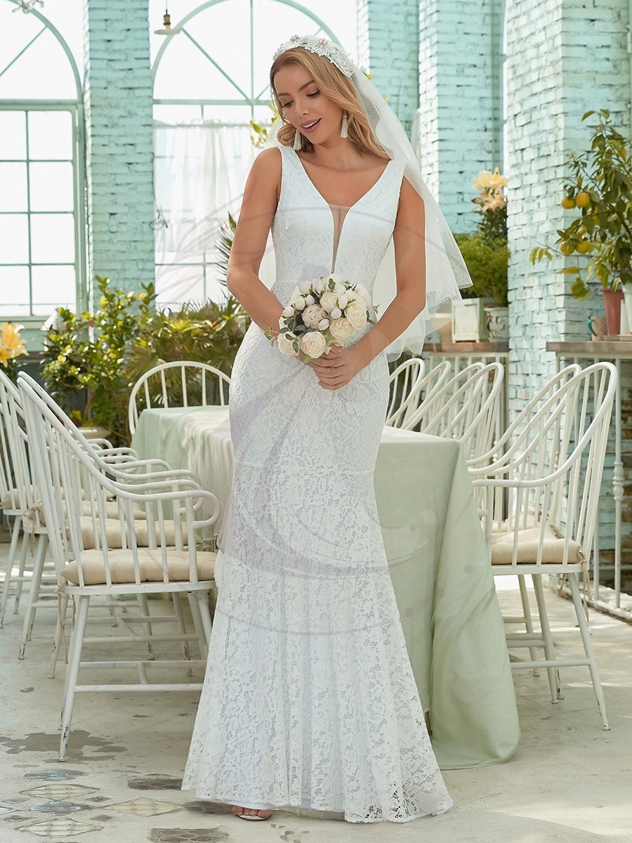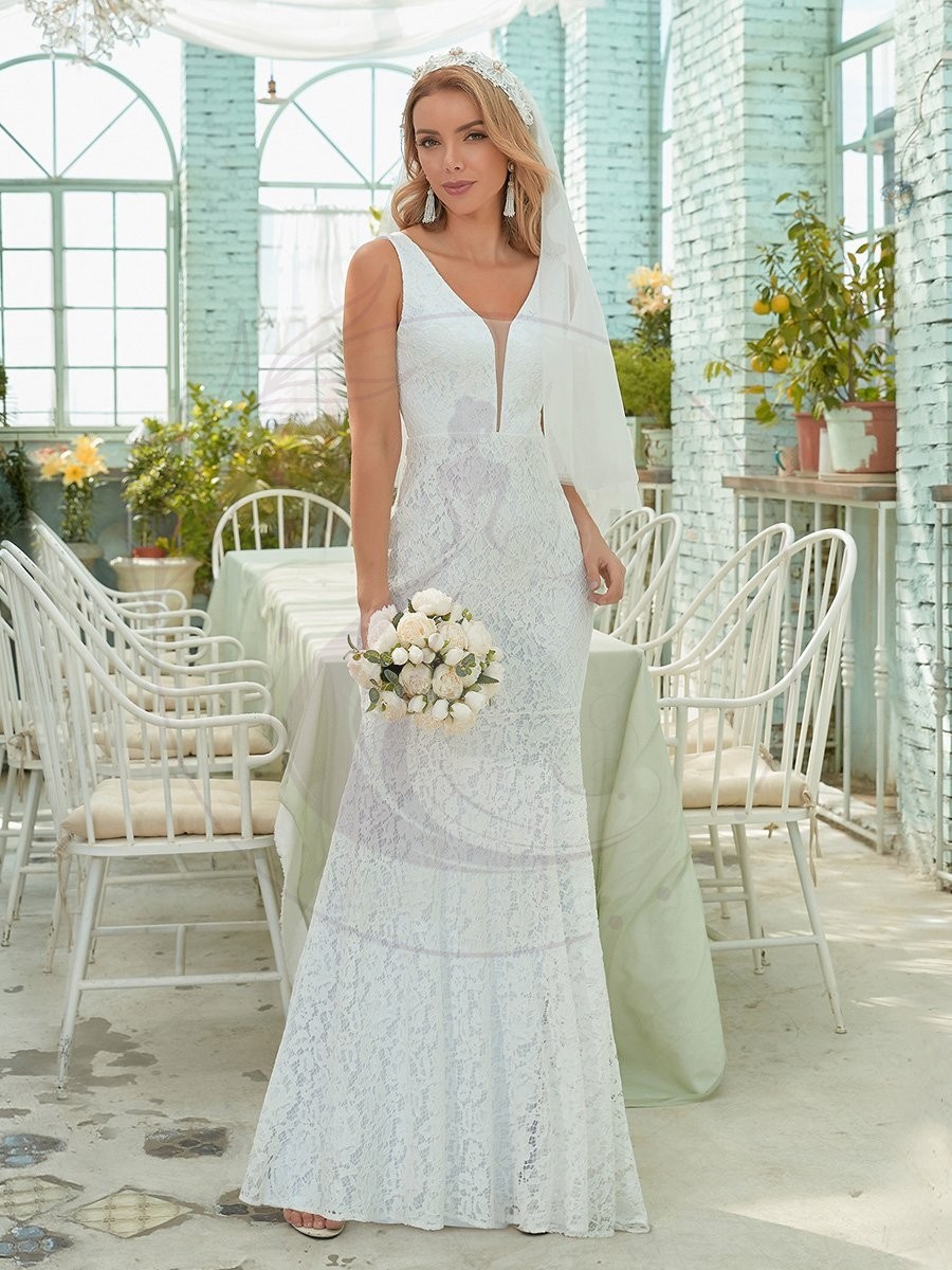 Si vous désirez faire sensation avec une tenue épousant vos formes pour le grand jour, optez pour cet impéccable modèle de robe de mariée en dentelle de style sirène. Son décolleté en V osé mais distingué ainsi que sa coupe ajustée mettront en valeur votre silhouette avec élégance et sophistication. Cette robe épurée vous promet d’être rayonnante en célébrant l’amour et votre nouvelle vie.