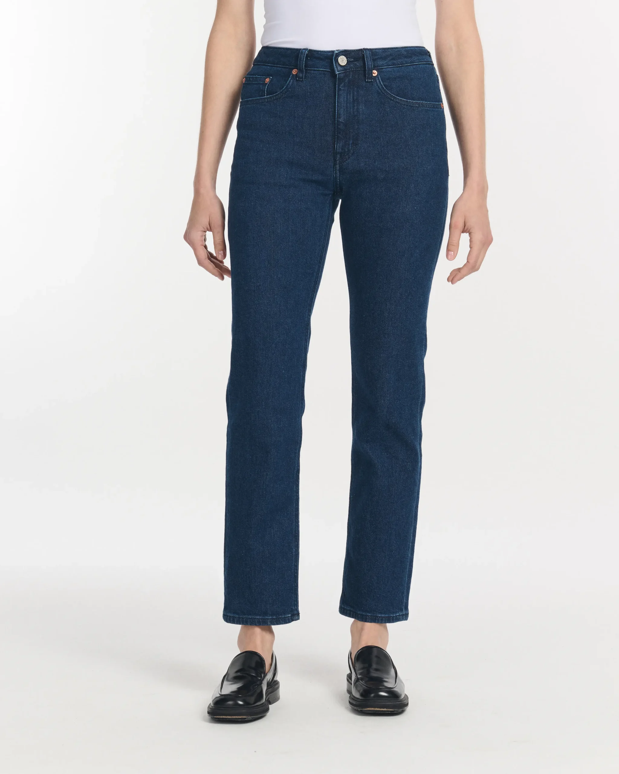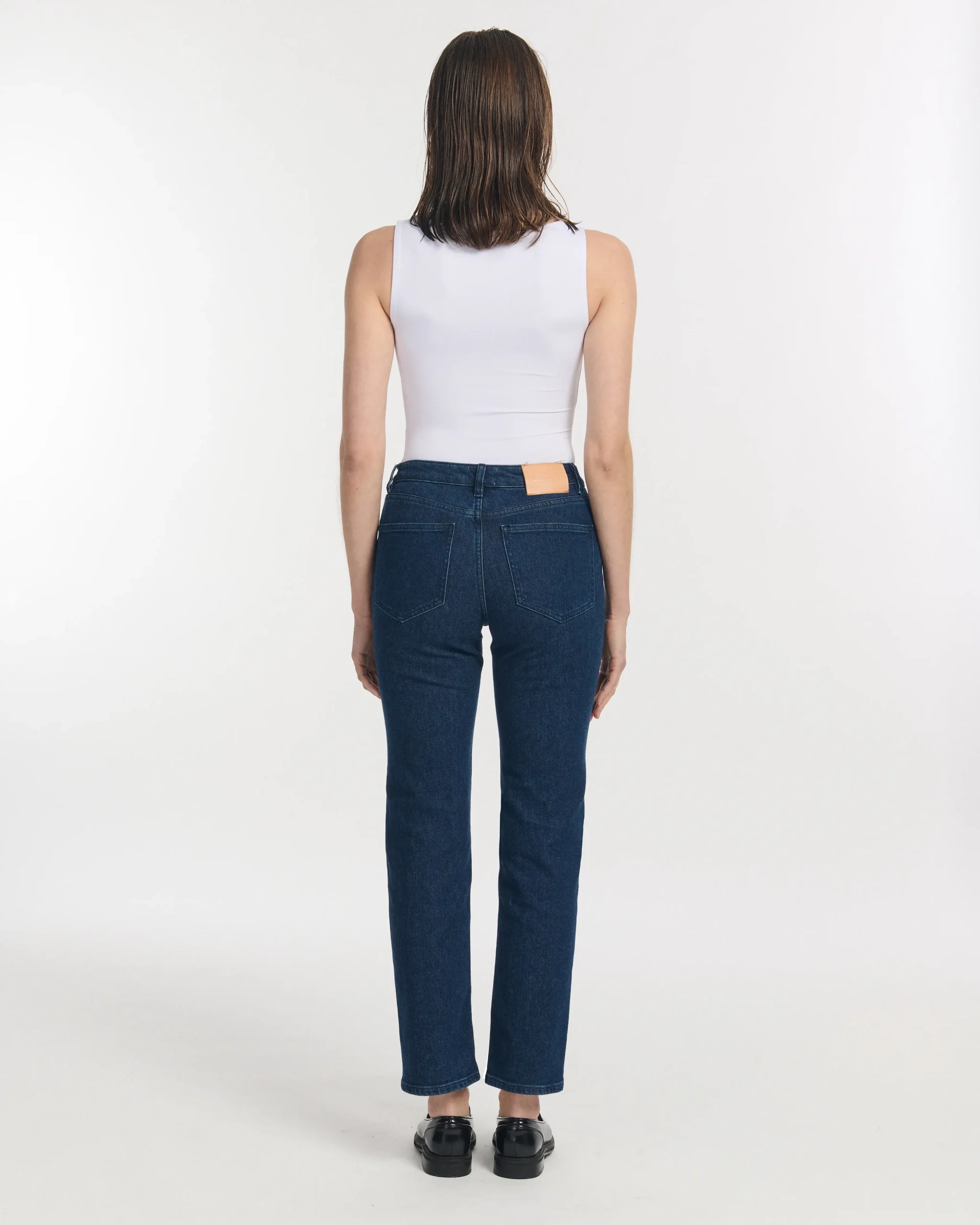 - Coupe droite classique, une taille moyenne équilibrée et une longueur regular pour un tombé parfait.
