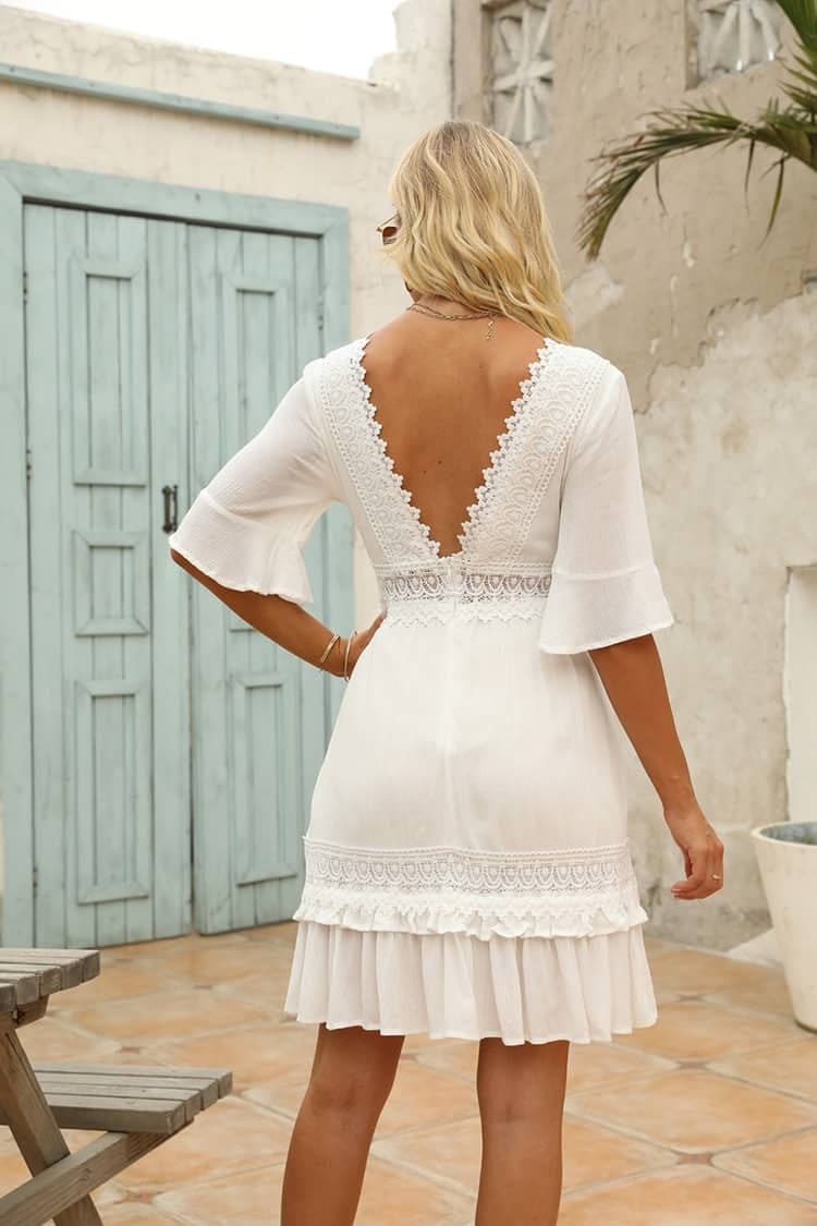 Alors, n’hésitez pas et choisissez cette robe courte à coupe droite et dentelle !