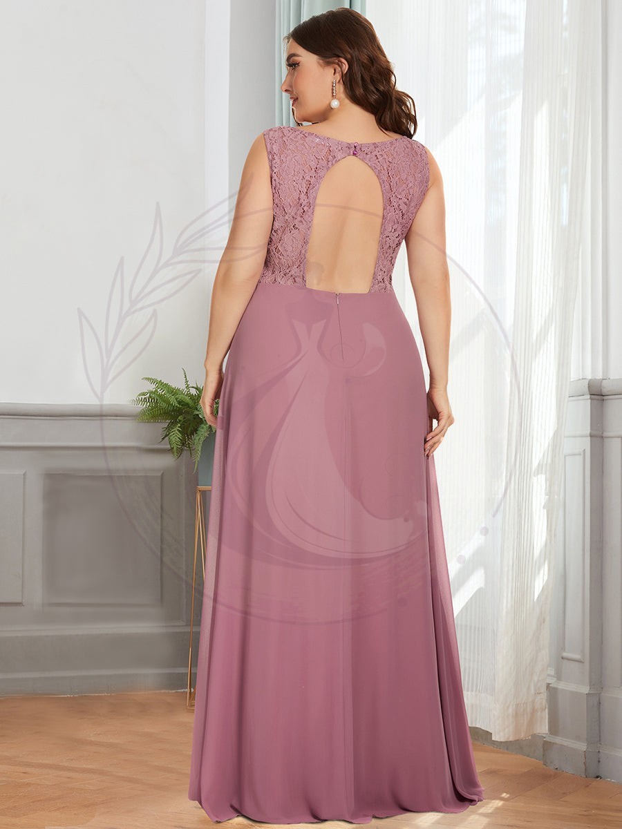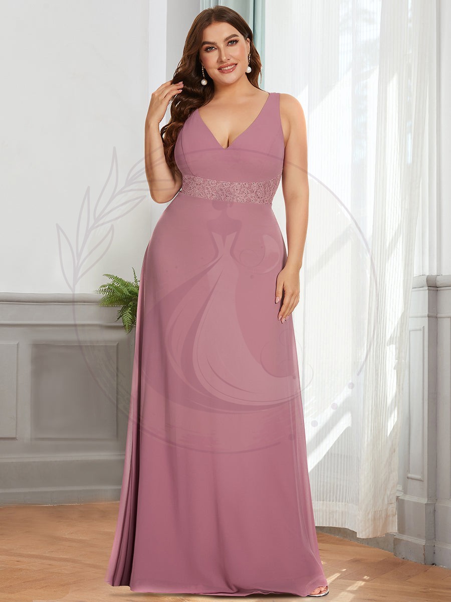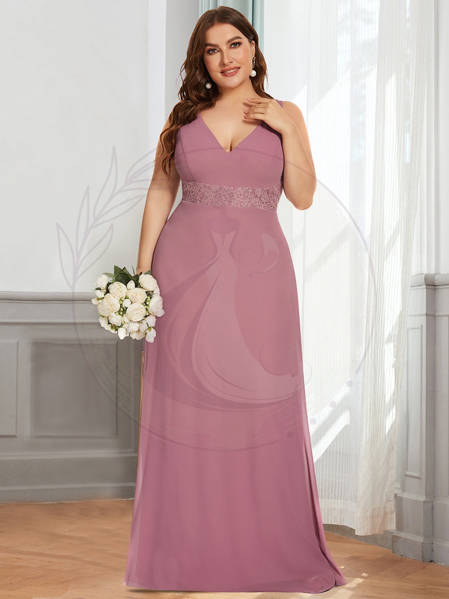 Ce modèle épuré de robe pour demoiselle d’honneur combine subtilité et élégance féminine. Elle affiche un haut de type débardeur rehaussé d’un somptueux dos nageur en dentelle et d’un charmant décolleté en V. Un bandeau délicat en dentelle souligne la taille et se prolonge en une longue jupe, agrémentée d’une couche externe diaphane.