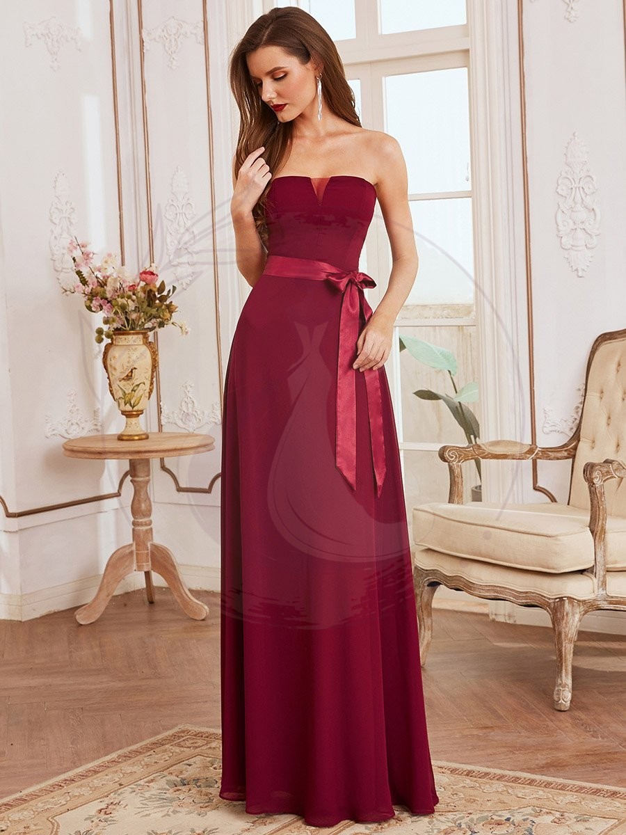 Rayonnez d’élégance et d’espièglerie avec cette sublime tenue de demoiselle d’honneur. Irrésistiblement charmante, cette robe attire immanquablement l’attention. Elle se distingue par son design à coupe évasée, son style bustier ainsi que son ruban ceinture orné d’un élégant nœud. Laissez-vous admirer sous toutes les coutures lors de ce grand jour.