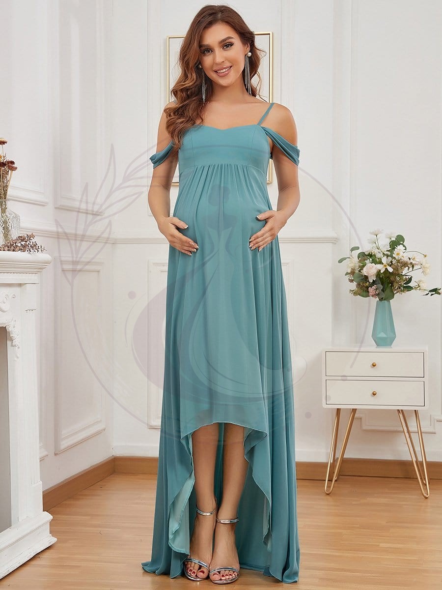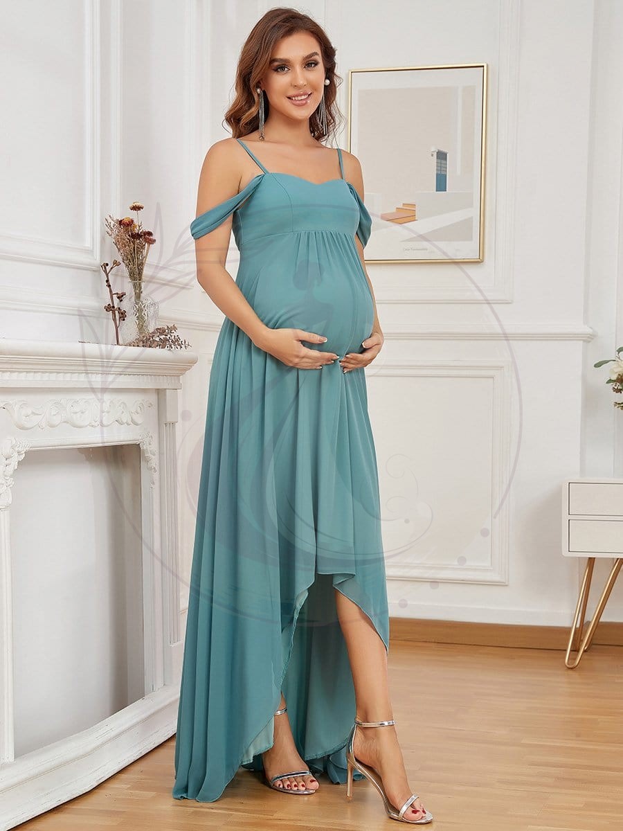 Robe de Grossesse Haute Basse à Epaule Dénudée et Col en Cœur