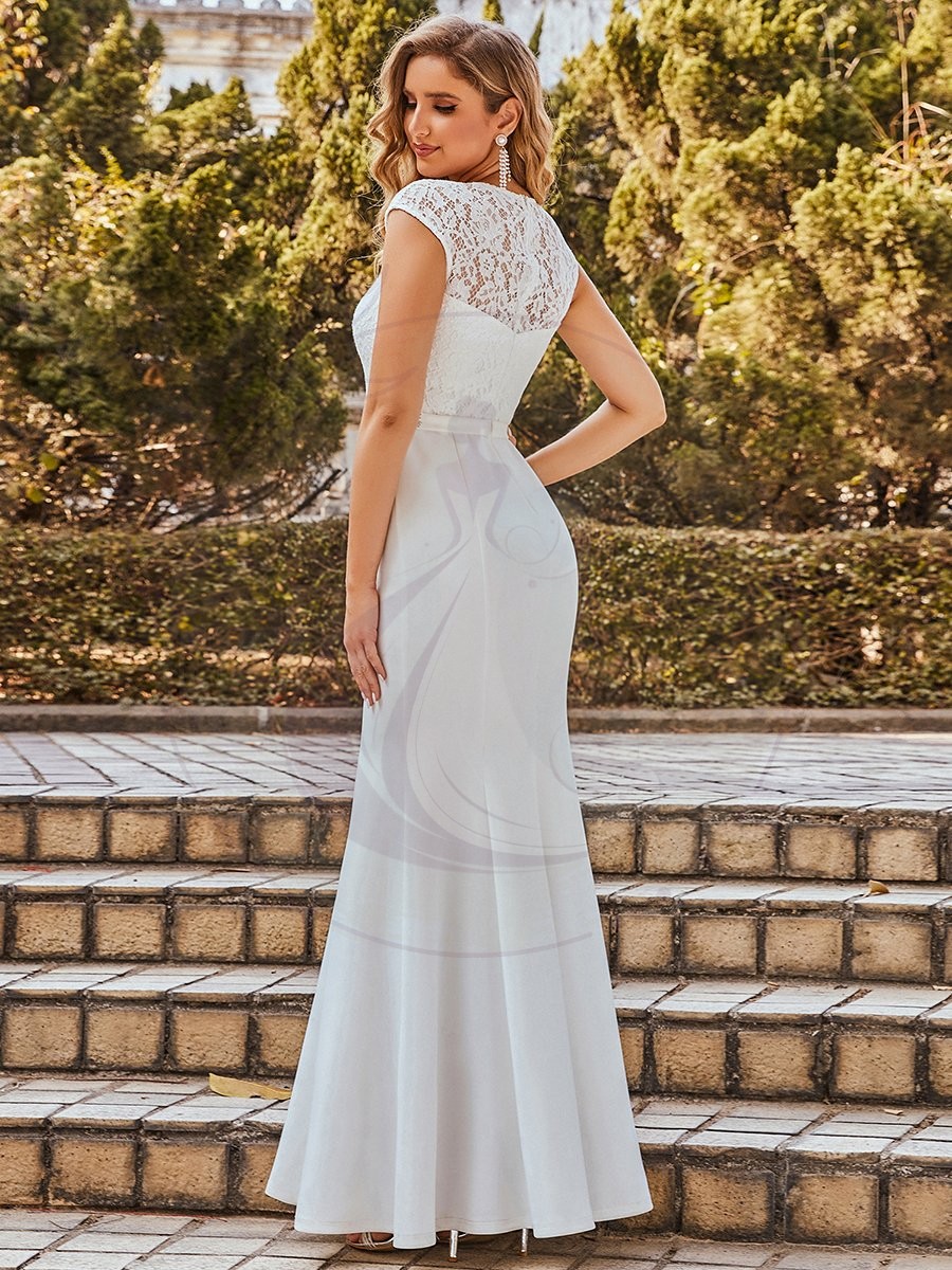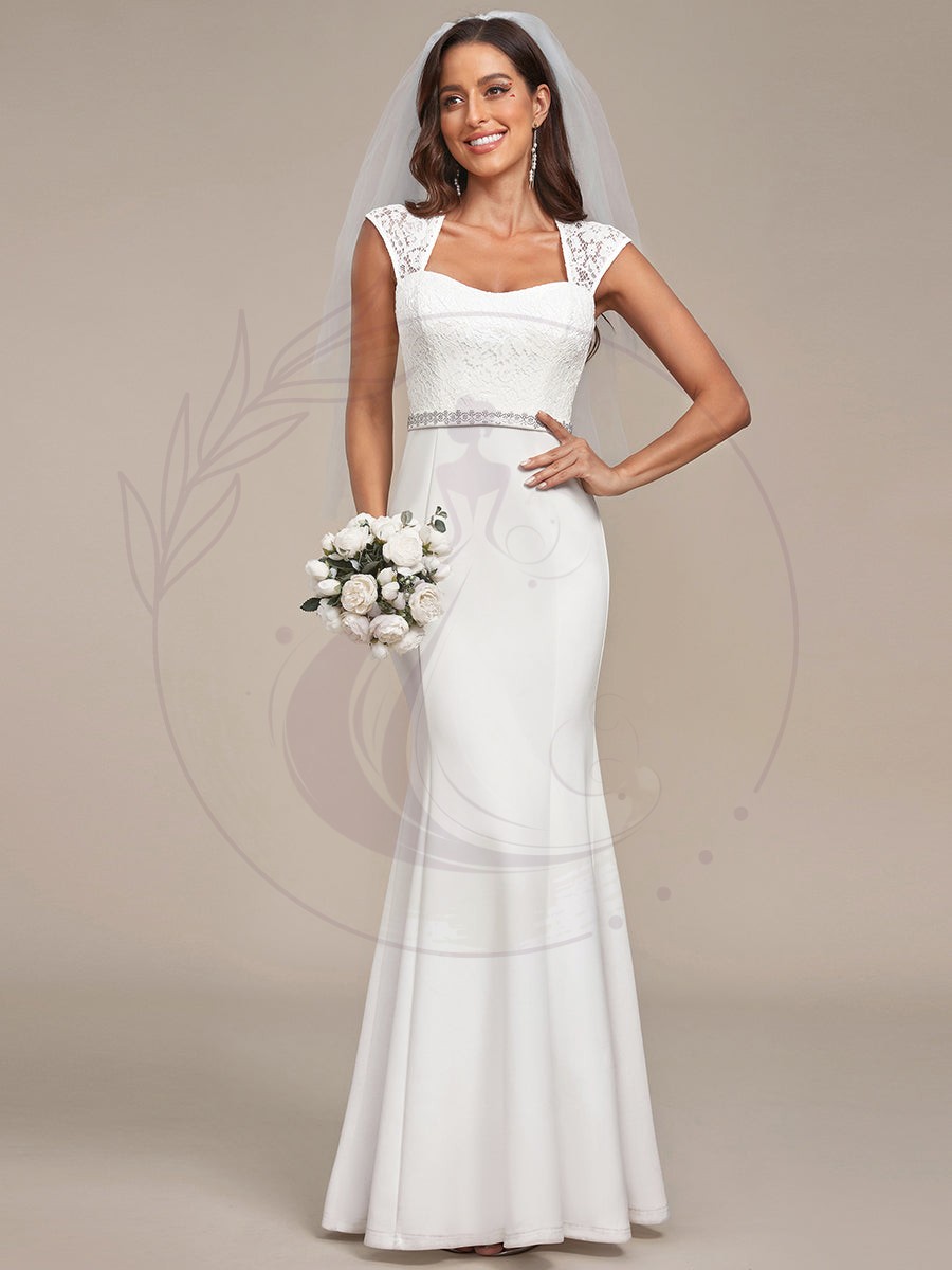Découvrez la robe de mariée de vos rêves, celle qui a été conçue pour sublimer votre silhouette. Élégante et gracieuse, cette création dispose de manches sophistiquées, des épaules délicatement structurées et un romantique décolleté en forme de cœur. La ceinture ornée apporte une touche d’éclat grâce à ses ornements scintillants. Enfilez cette robe silhouette trompette et rayonnez le jour où vous direz ‘oui’ à l’amour de votre vie.