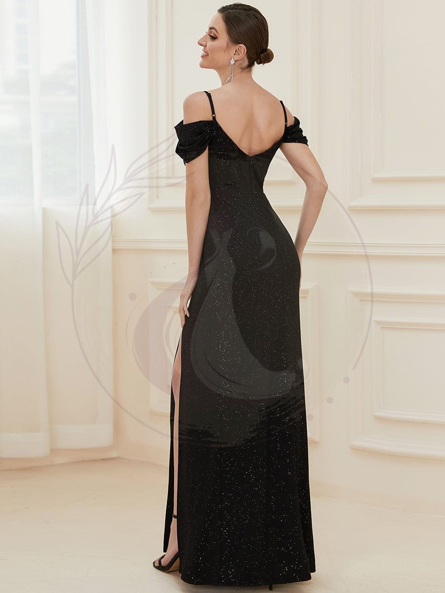 Vous captiverez l’attention de tous en arborant cette magnifique robe de gala traînante. Son décolleté profond agrémenté de plis raffinés offre une allure séduisante. Sa coupe avantageuse associée à un dos coeur spectaculaire vous sublimera. De plus, ses manches tombantes apportent une touche d’élégance indéniable à l’ensemble.