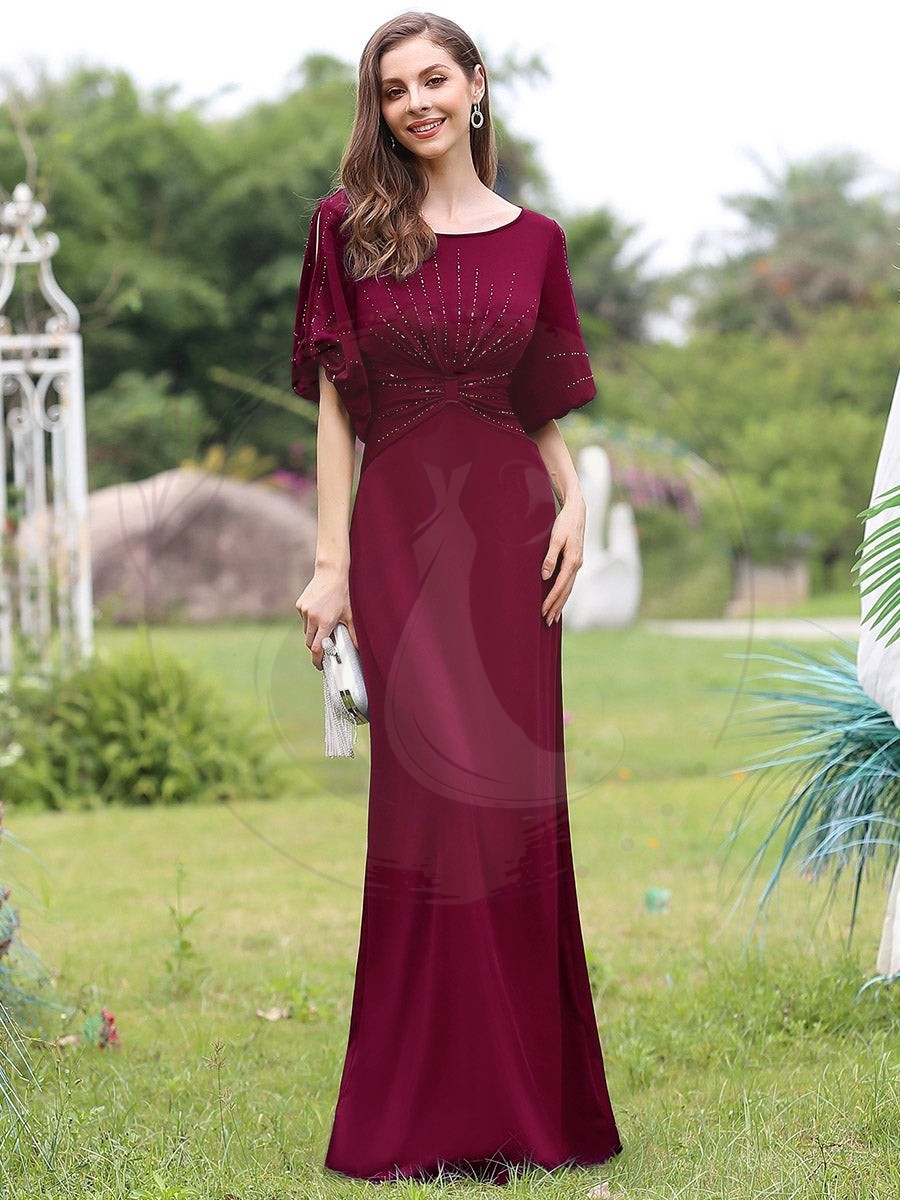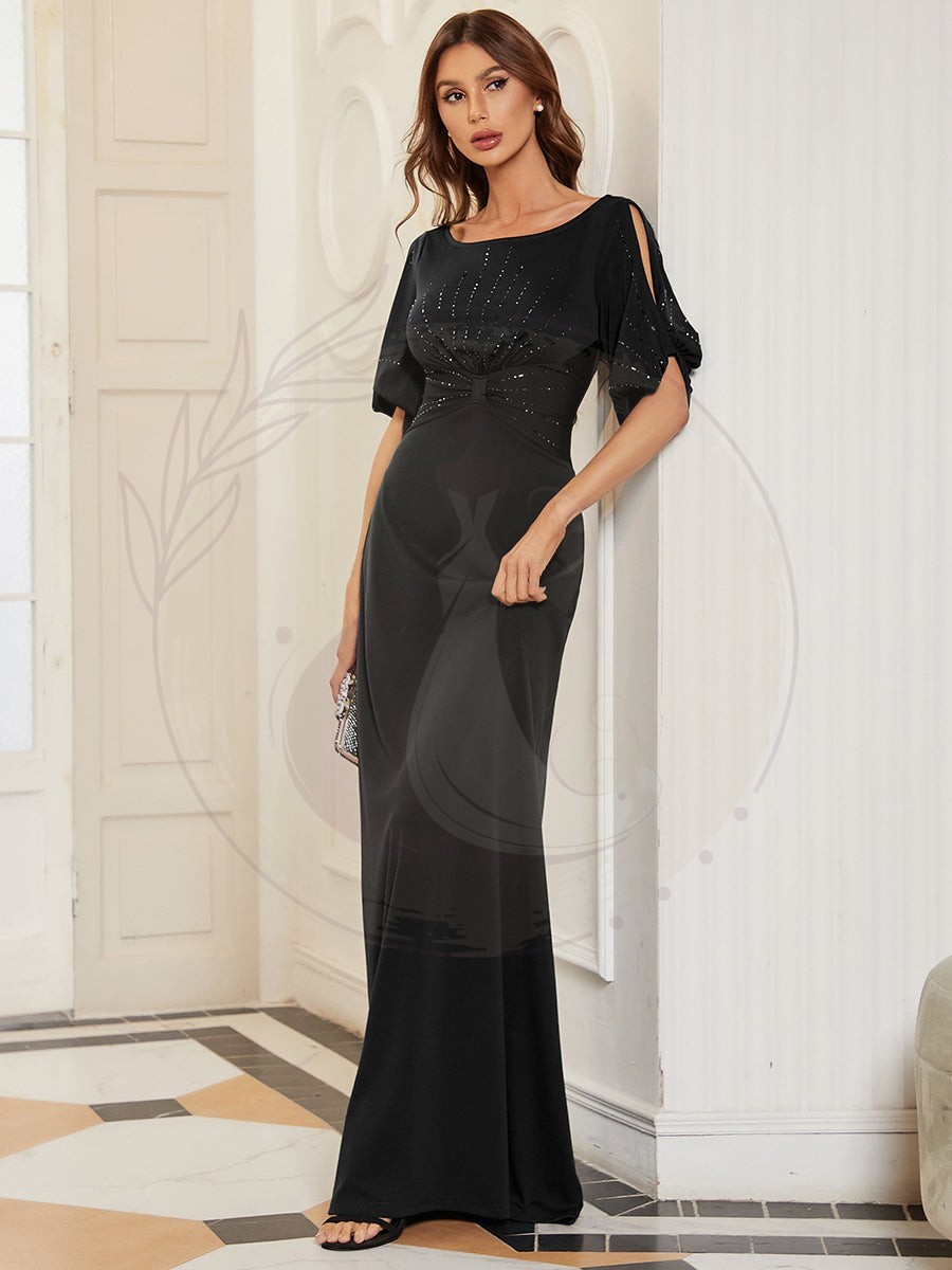 Découvrez le charme d’une robe de gala sophistiquée qui épouse vos formes avec élégance. Grâce à sa coupe évasée, son encolure ronde et ses manches mi-longues, elle incarne la quintessence du raffinement. Son aspect éblouissant est rehaussé par des motifs scintillants appliqués à chaud, pour une allure des plus raffinées. Avec cette tenue, accessoirisée d’éléments en argent, vous brillerez de mille feux et capturerez l’admiration des regards. Idéale pour les grands événements tels que les noces, les cérémonies de récompenses, les cocktails et les fêtes de prestige, cette robe de soirée époustouflante convient parfaitement à une multitude d’occasions formelles.