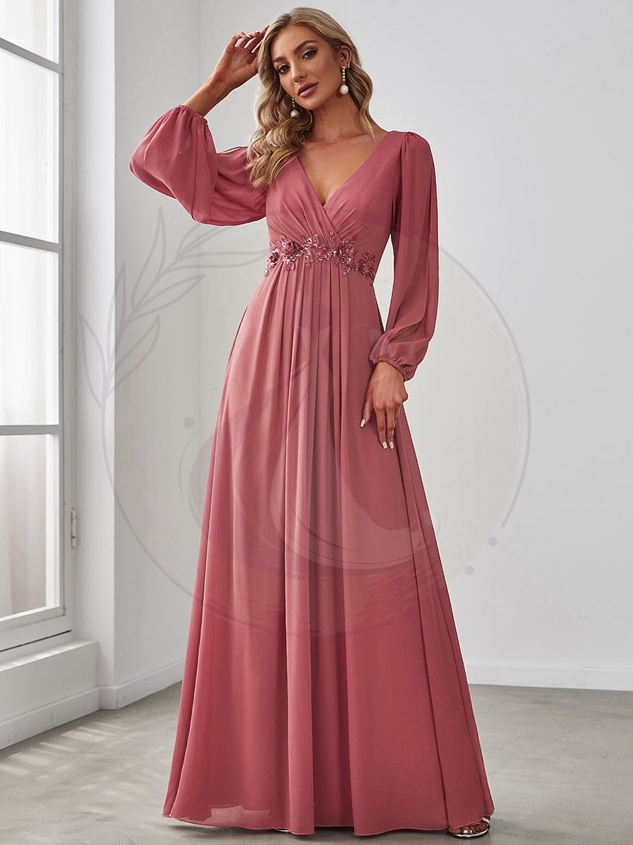 Cette robe de soirée présente un double décolleté en V et une jupe trapèze, tandis que les fronces sur le buste et la taille créent une silhouette flatteuse. Quoi de mieux, les tissus en font la robe parfaite pour danser toute la nuit ! Parfait pour le soir fête, cocktail, bal, retour à la maison, remise des diplômes, mariages !