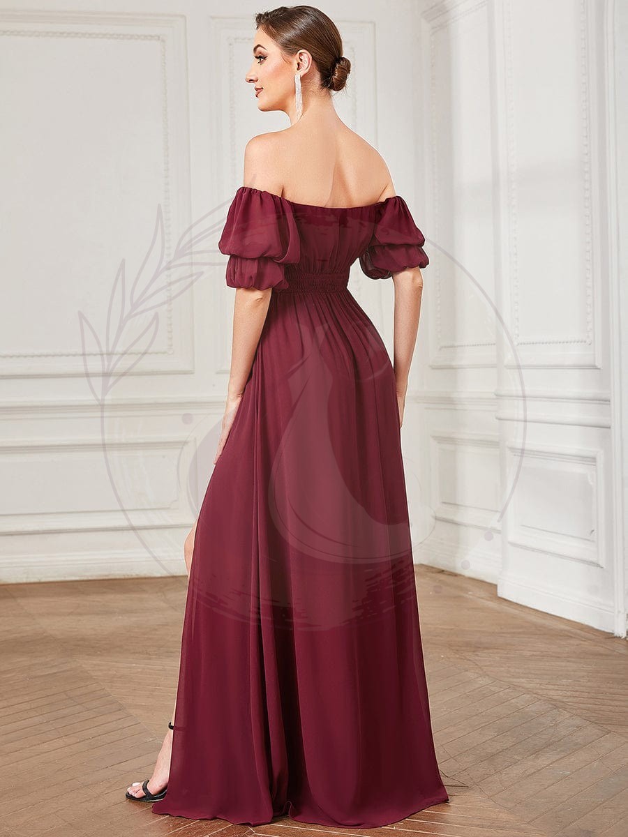Soyez le premier à laisser votre avis sur “Robe de soirée Mousseline froncée à épaules dénudées”