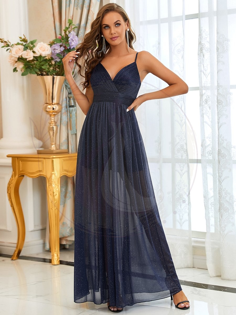 Soyez le premier à laisser votre avis sur “Robe de soirée plissée sans manches à bretelles spaghetti et col en V”