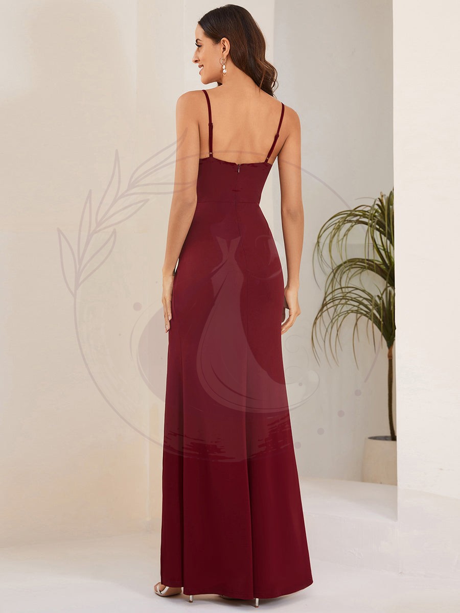 Faites sensation lors de vos événements de prestige avec cette élégante robe de gala. Son design sans manches sculpte la silhouette grâce à sa coupe ajustée et son tissu extensible. Les fines bretelles, ornées de détails scintillants tels que des perles ou des diamants artificiels, confèrent un éclat raffiné à l’ensemble. La poitrine de la robe présente de jolies fronces pour un volume qui danse au gré de vos mouvements, assurant une présence remarquée lors de fêtes, réceptions nuptiales ou bals de finissants.