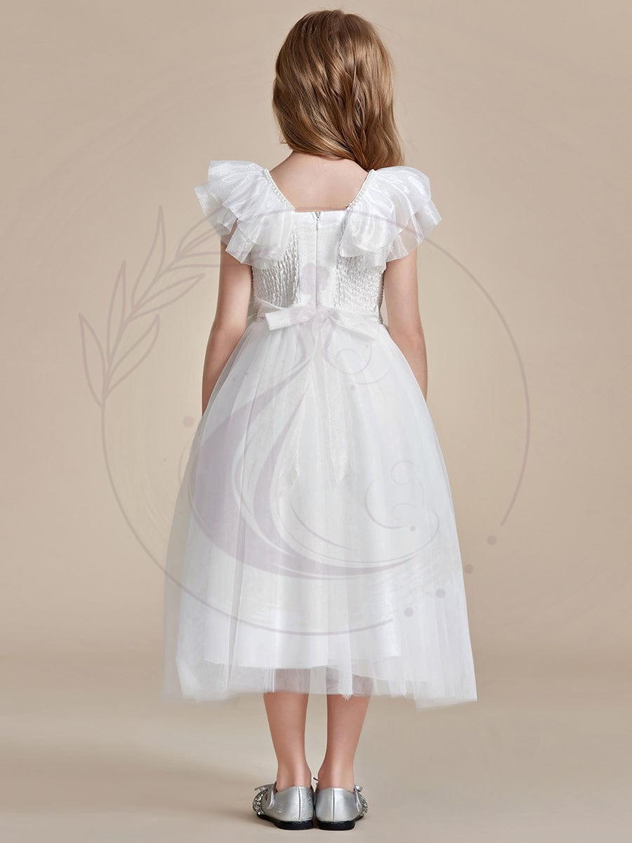 Assurez-vous que votre jeune fille d’honneur brille de mille feux tel un personnage de fable avec cette robe sophistiquée pour enfants destinée aux cérémonies. Ornée d’un adorable nœud et d’une jupe aérienne en tulle, elle incarne le choix idéal pour toute festivité d’importance.