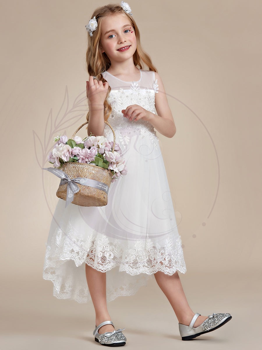 Découvrez notre splendide Robe de demoiselle d’honneur pour enfants, raffinée et tendance, agrémentée de fines dentelles, d’une coupe asymétrique novatrice et d’une ligne A avantageuse. Grâce à sa coupe sans manches, elle offre un confort optimal et garde votre enfant au frais lors des festivités nuptiales ou de tout événement mémorable. Cet habit est l’idéal pour les petites filles d’honneur ou pour celles qui souhaitent arborer un look chic et sophistiqué. Confectionnée avec des textiles de première qualité, cette robe promet robustesse et longévité, tout en attirant immanquablement l’attention grâce à son esthétique soignée.