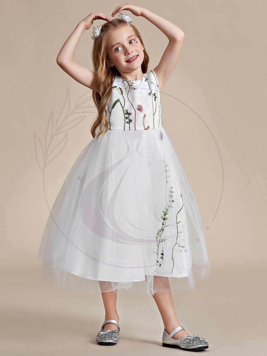 Optez pour cette somptueuse robe de cérémonie pour fillette, confectionnée avec grâce pour les festivités inoubliables. Ses ornements brodés finement élaborés, sa jupe en tulle ample et vaporeuse, son élégant ruban marquant la taille et son décolleté circulaire en font une création raffinée et à la pointe de l’élégance enfantine. La confection de ce modèle est exemplaire, assurant une silhouette magnifiquement mise en valeur, adaptée à toutes les silhouettes.