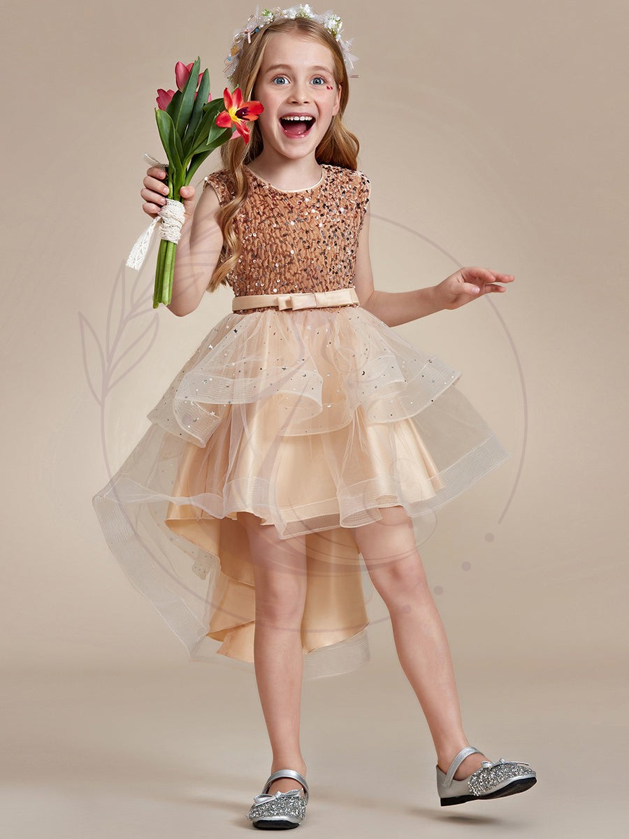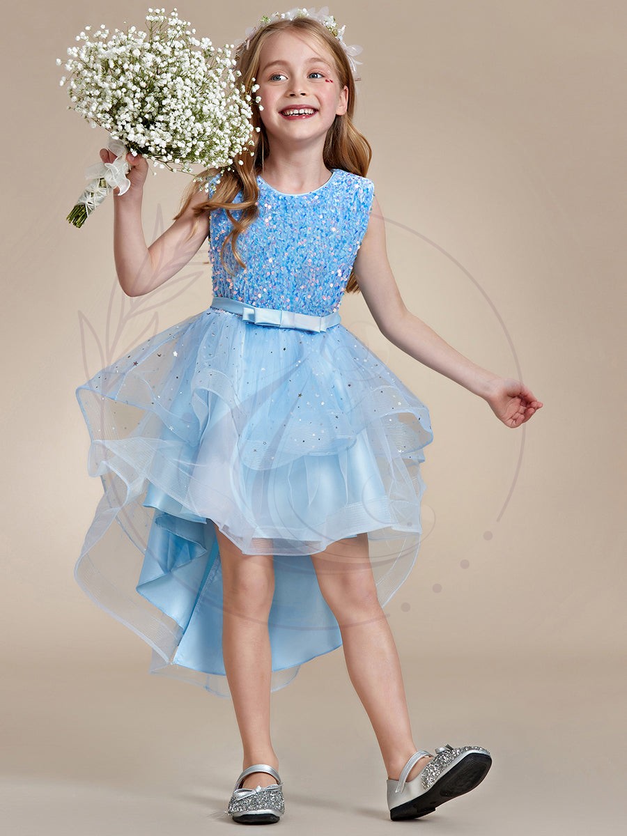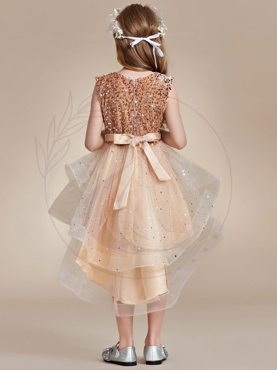 Offrez à votre enfant une expérience féerique avec cette élégante Robe de cérémonie pour jeunes filles, idéale pour tous les événements mémorables. Ornée de pois délicats et incrustée de paillettes brillantes, elle émane une aura de glamour et d’éclat irrésistible. Son design ample procure une silhouette volumineuse et dynamique, complémentée par un ourlet asymétrique : plus court à l’avant pour une modernité affirmée, et plus long à l’arrière pour une finition sophistiquée.