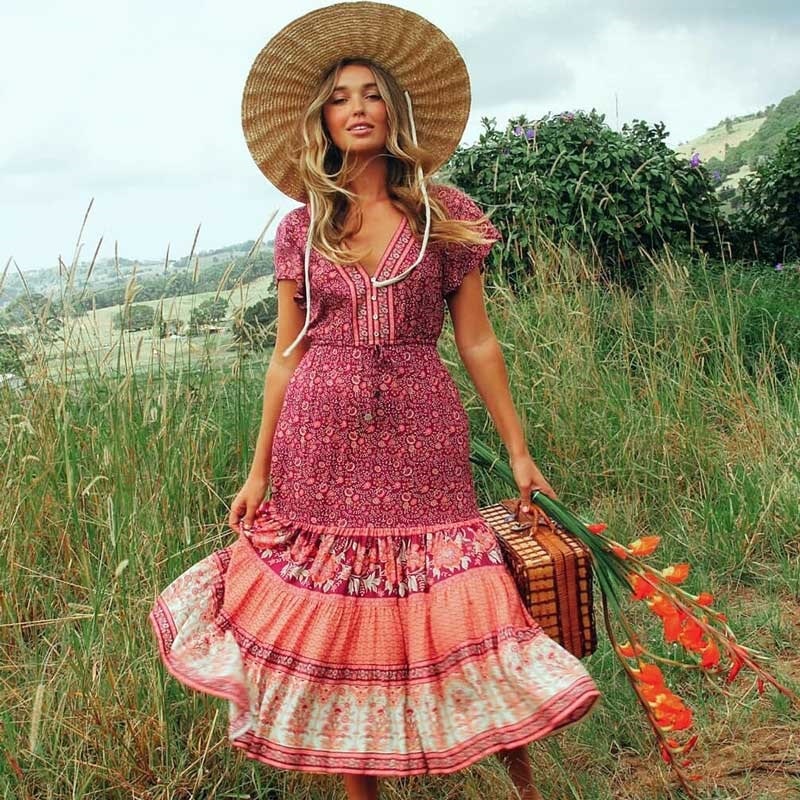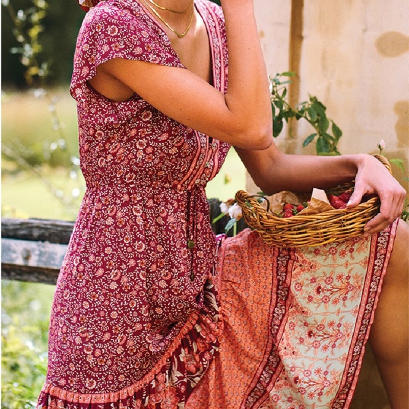 Soyez le premier à laisser votre avis sur “Robe longue bohème hippie à manches évasées rouges”