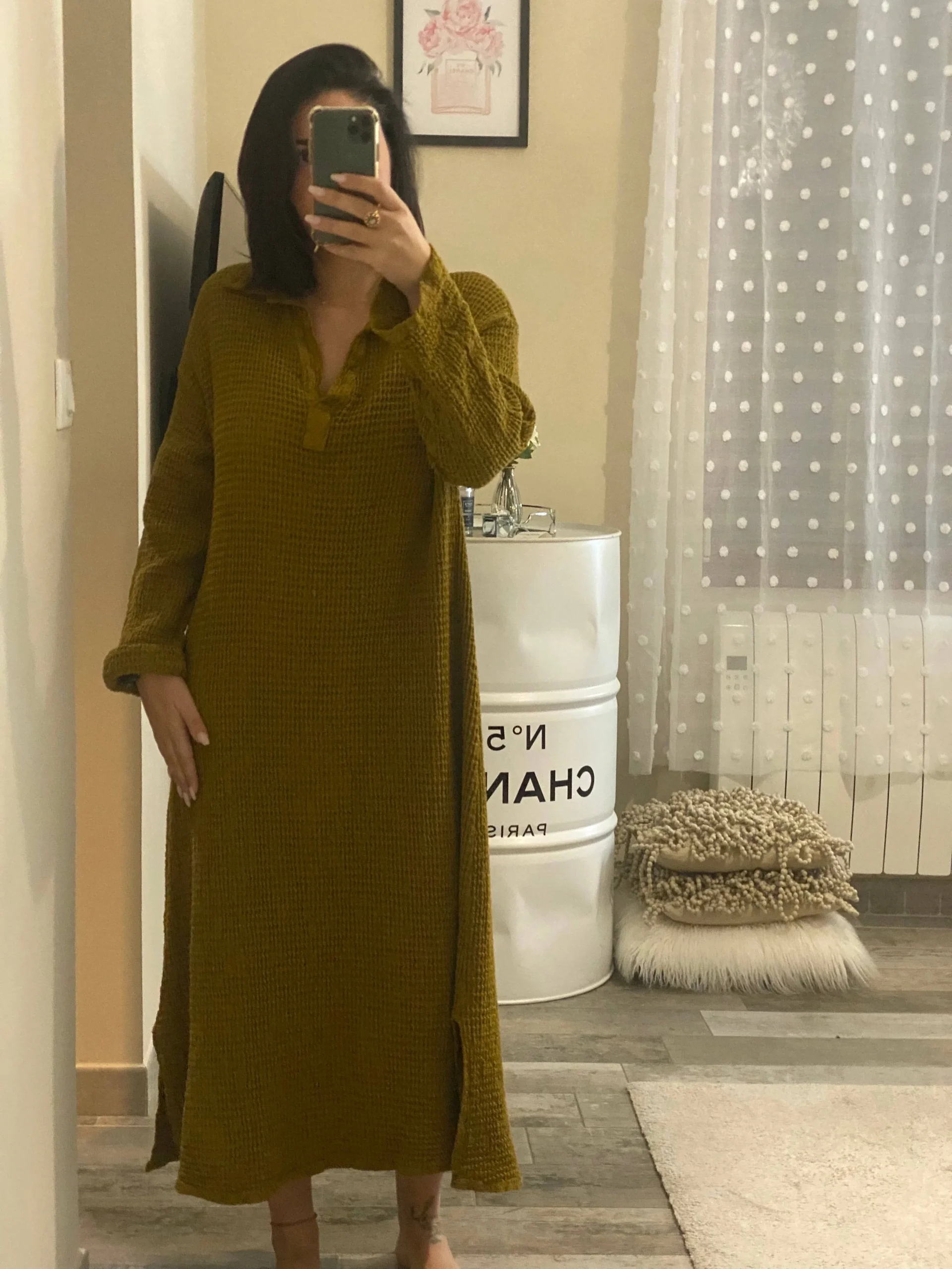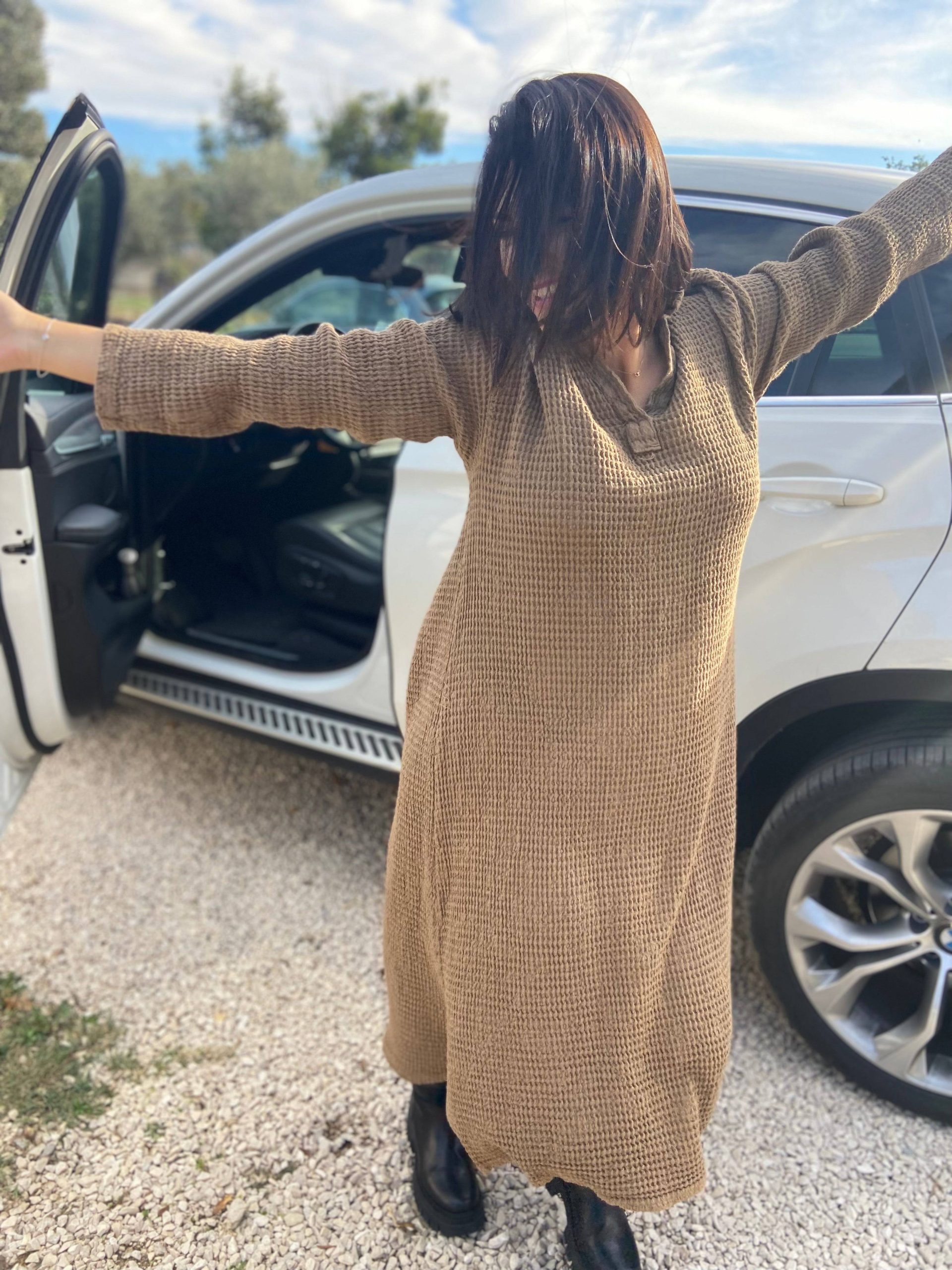 Laissez vous séduire par notre Robe Longue en Coton motif nid d’abeille