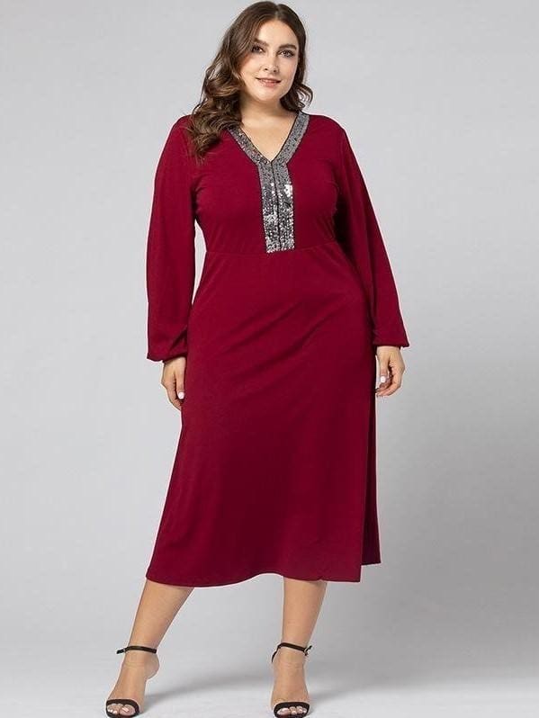 - Vêtements de longueur maxi en bordeaux sans motif avec col en V