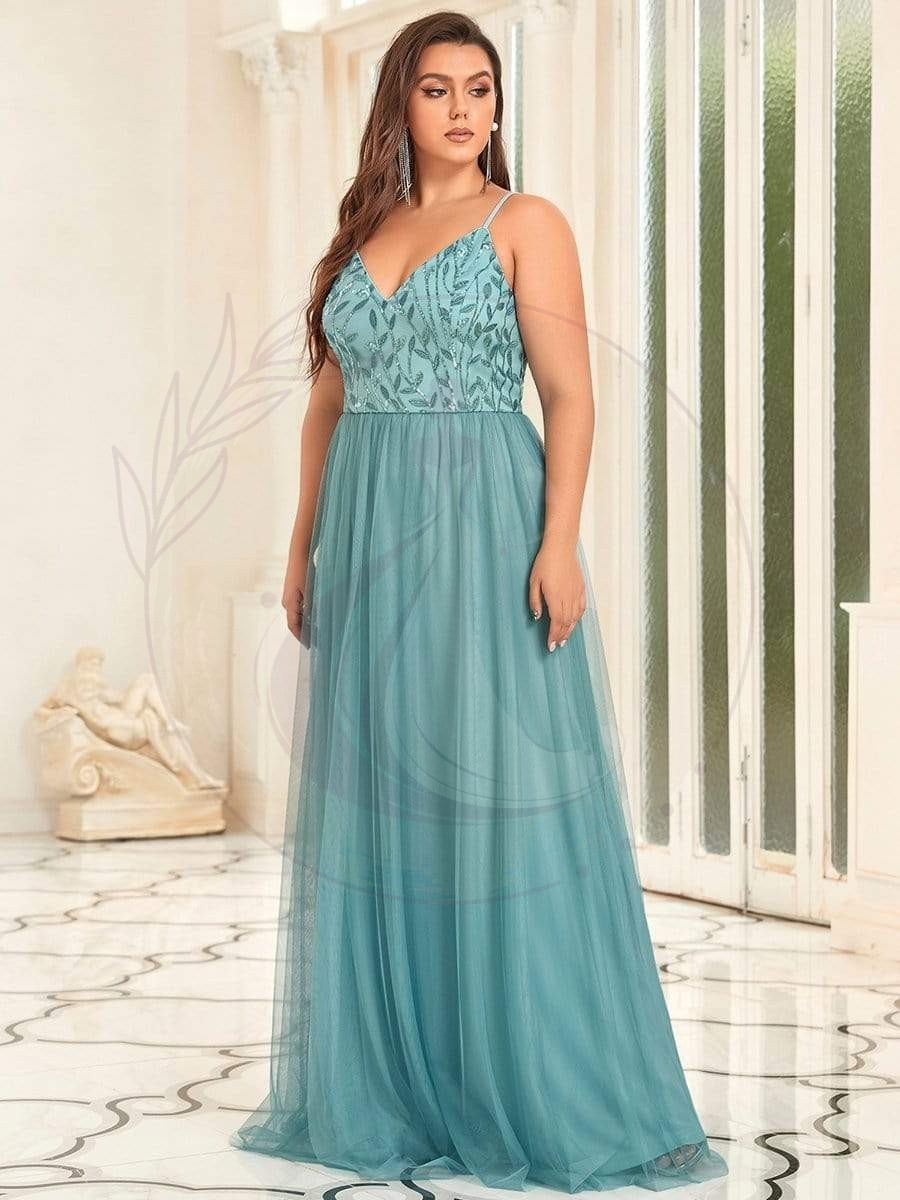 Faites sensation à l’événement avec cette sublime Tenue d’invitée pour mariages, exhibant un haut richement détaillé avec un dessin végétal étincelant de paillettes, accentué par des bretelles fines et élégantes, un décolleté en V profond et un dos échancré séduisant. La silhouette s’évase en une jupe ample plissée qui tombe gracieusement jusqu’au sol.