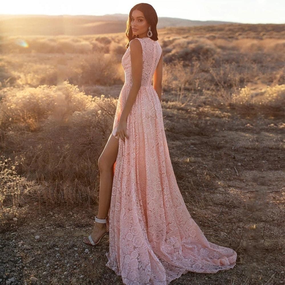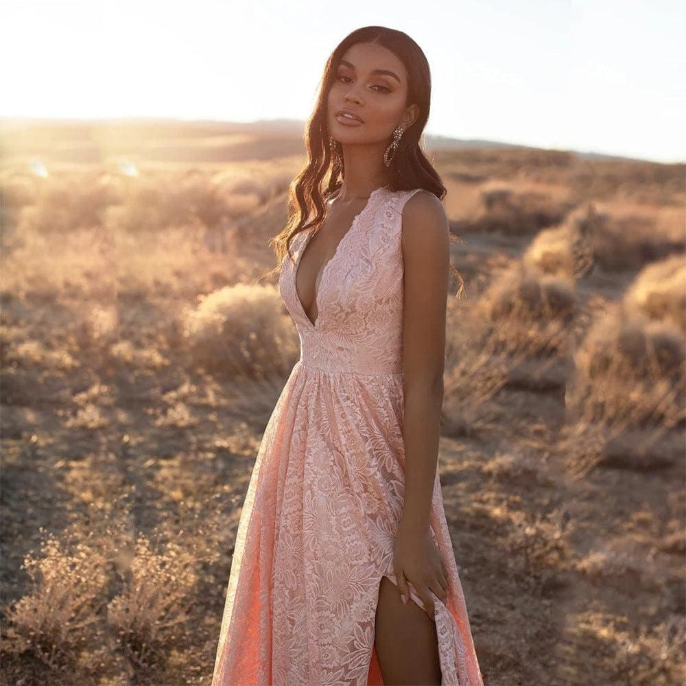 Cette robe rose en dentelle bohème est le mélange parfait entre chic et un sentiment de liberté. Elle est faite d’un matériau doux et confortable, avec un mélange de dentelle qui se traduit par une aura romantique. Vous pouvez la porter pour tout événement spécial et être certaine d’être ravie !