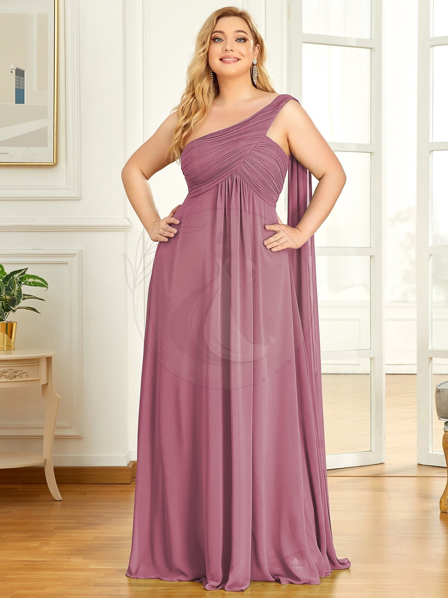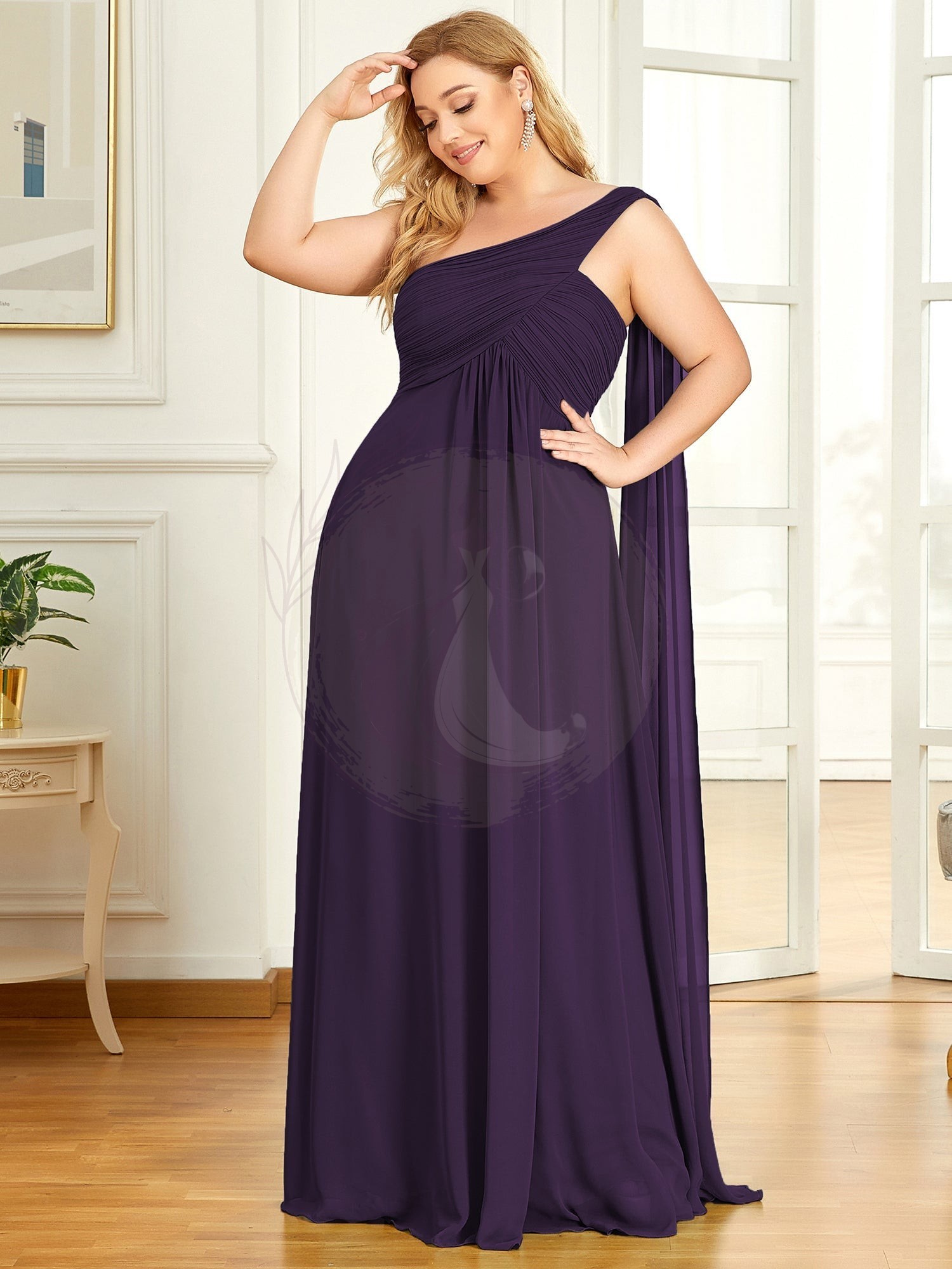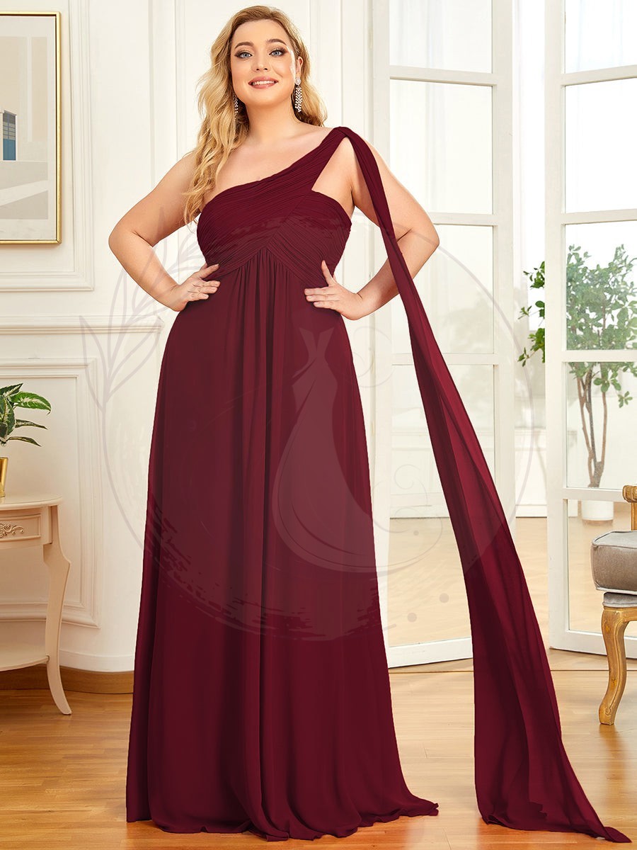 Robes de Soirée Grande Taille Maxi Chiffon avec Une épaule pour Femmes
