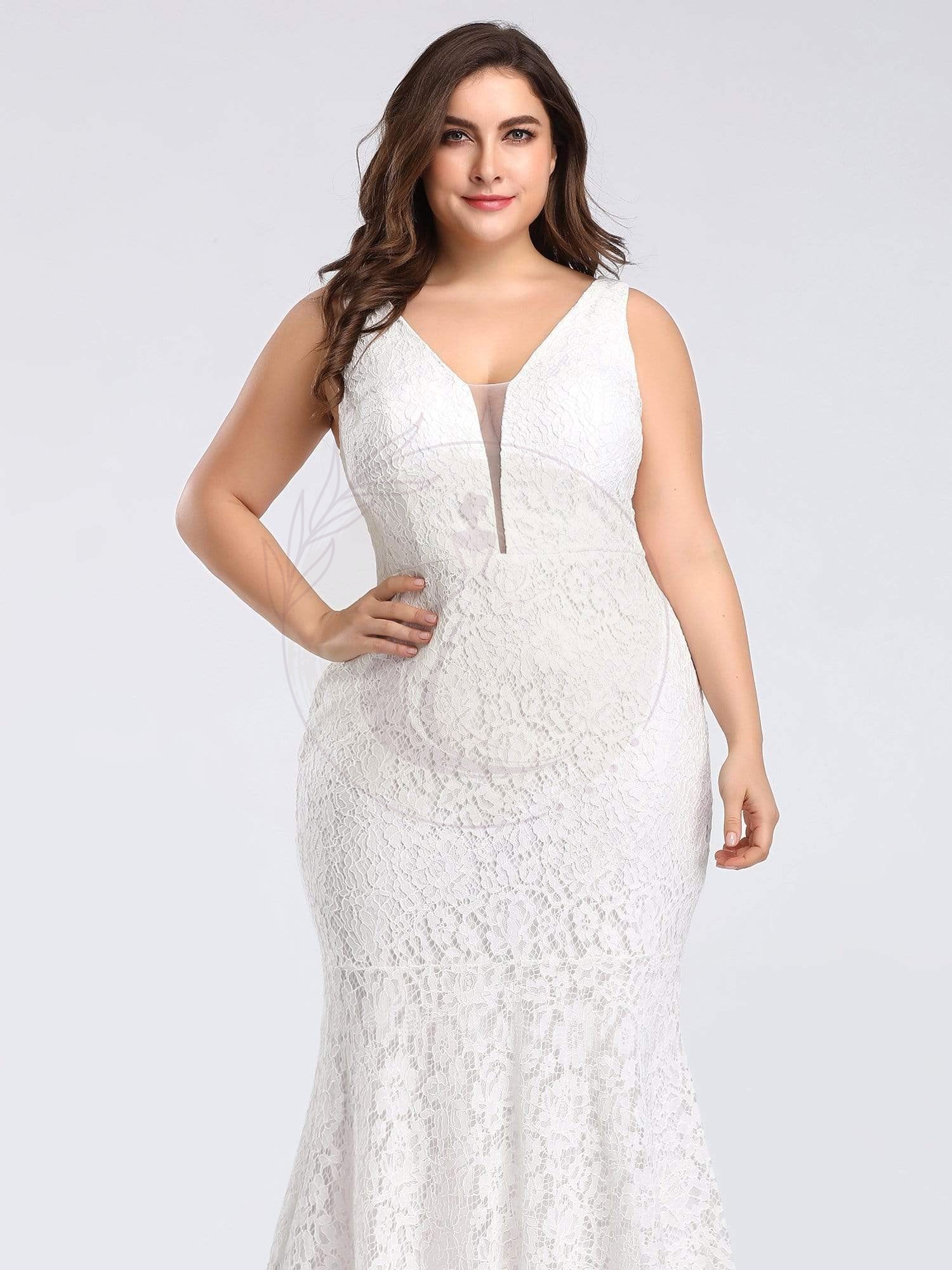 Découvrez cette captivante robe de gala grande taille élégamment ornée de dentelle, dévoilant un décolleté plongeant en V et une coupe sirène flatteuse pour valoriser vos formes.Idéale pour une multitude d’événements importants : soirée de gala, cocktail, bal, grandes réceptions, nuptialités, cérémonies de baptême, rentrée solennelle, ou encore célébration de graduation et autres occasions officielles!