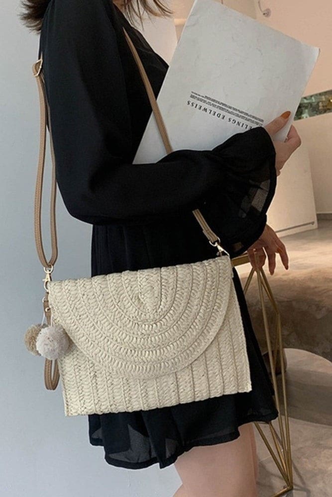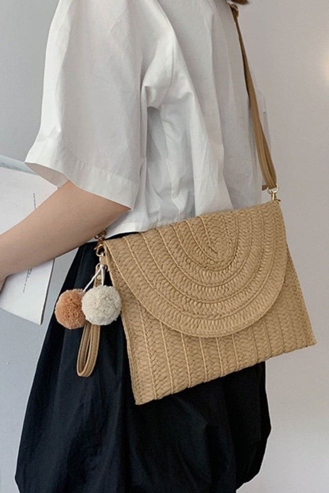 Cet été, votre look bohème se complète avec le sac à main en paille ! On adore sa forme enveloppe, sa bandoulière à mousquetons et ses pompons tout doux. Son rabat est fermé par un bouton aimanté et l’intérieur est doté d’une poche plaquée pour garder vos clés en sécurité. Avec son bandoulière amovible, ce sac à main boho en paille tressée s’adapte à toutes vos occasions, à porter à l’épaule pour avoir les mains libres le jour ou à la main le soir pour être chic.