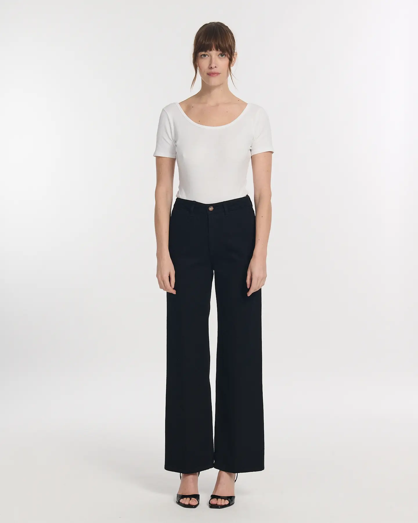 Sa jambe large élance votre silhouette et vos jambes, à porter avec une belle paire de talons. Pour un total look denim féminin, associez avec la veste BAYA.