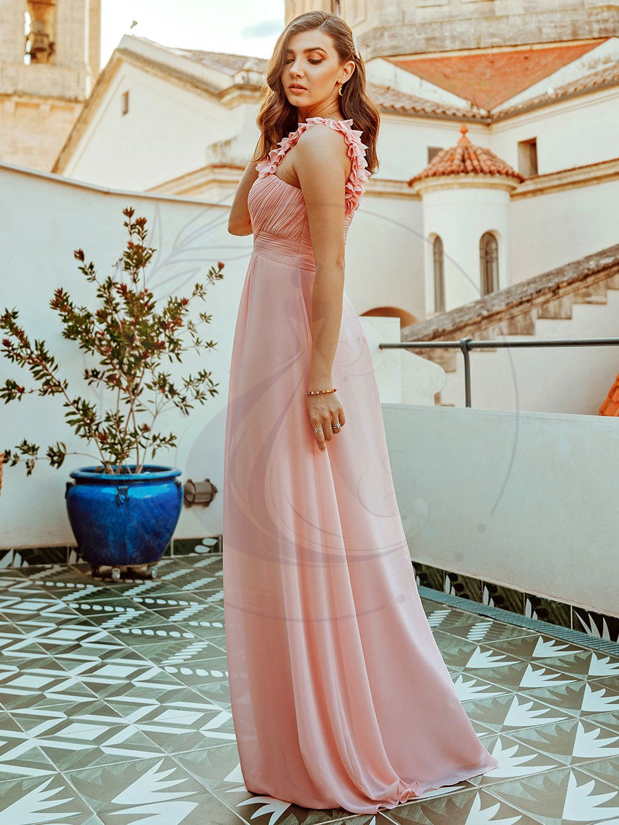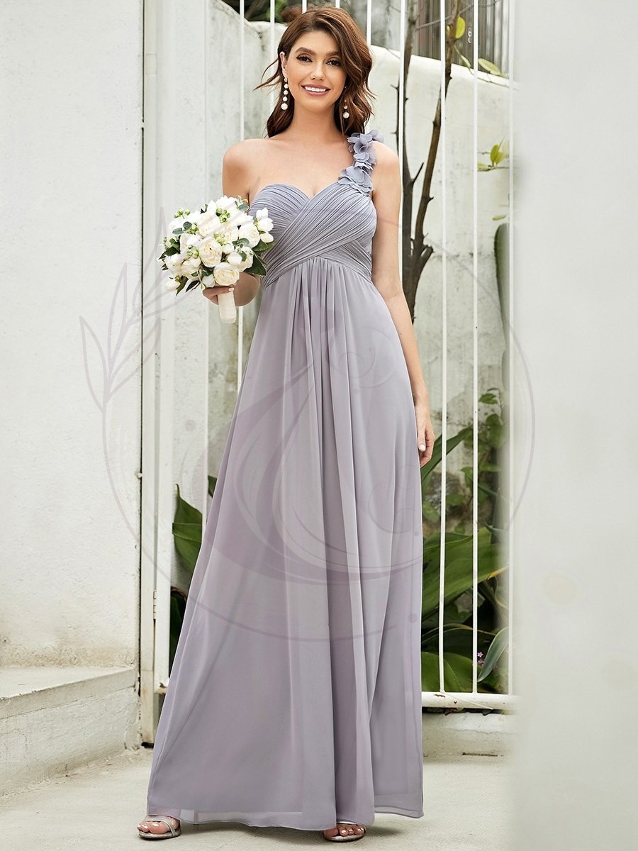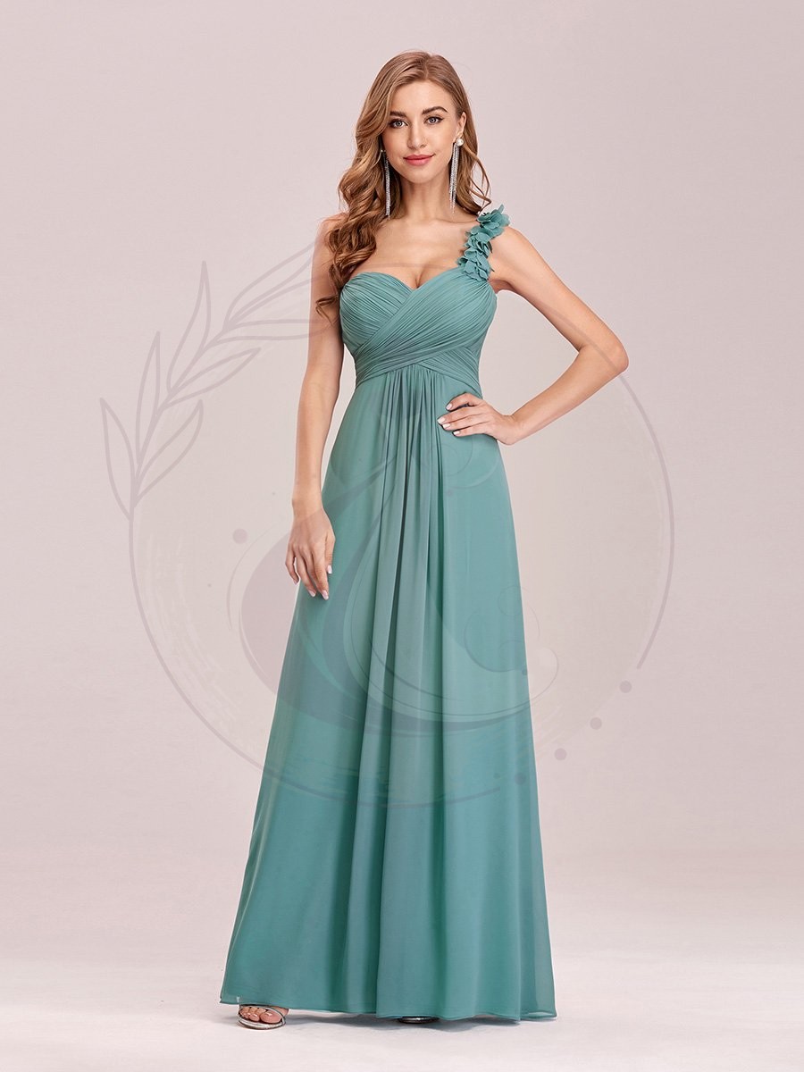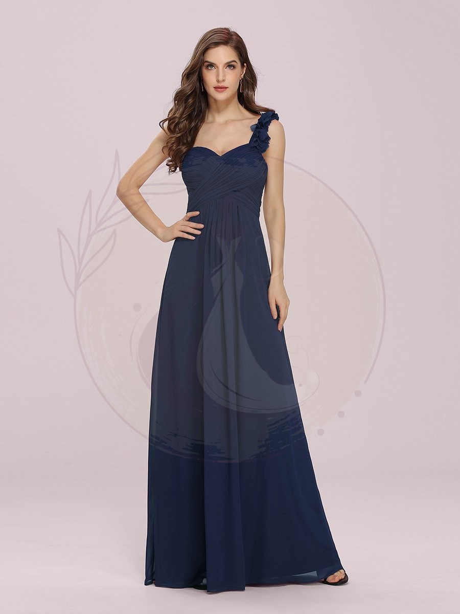 Élégante et sophistiquée, cette magnifique robe asymétrique met en avant un charmant décolleté plissé en forme de cœur, complété par un agencement drapé qui souligne délicatement la silhouette. Ornée d’une fleur sur son unique bretelle, elle confère une allure romantique à la tenue. Idéale pour les grandes occasions telles que les galas, cérémonies de cocktails, mariages ou bals.