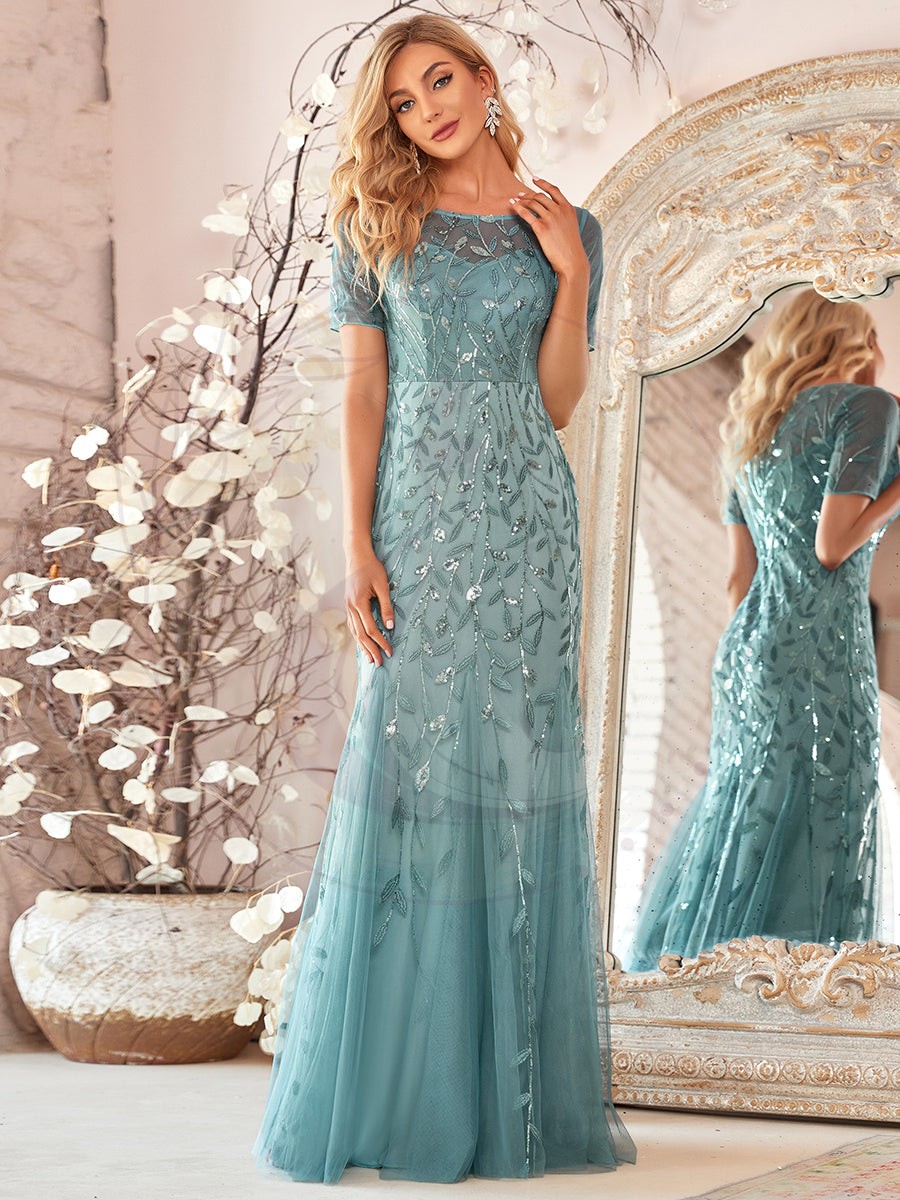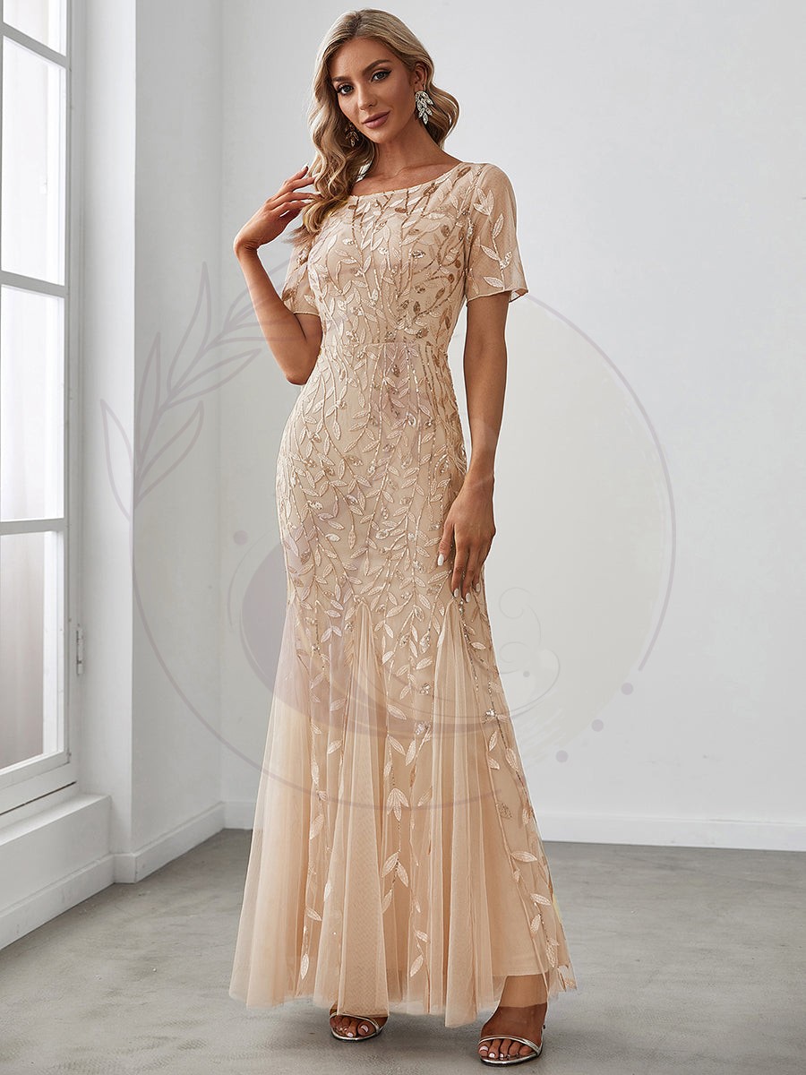 Découvrez cette sublime robe grande taille ornée de tulle pailleté et d’un motif feuillage lumineux qui incarne à merveille le romantisme. Avec son encolure ronde en transparence, elle offre une allure distinguée et chic. Les détails soignés de cette tenue reflètent votre sens des tendances et votre personnalité unique.