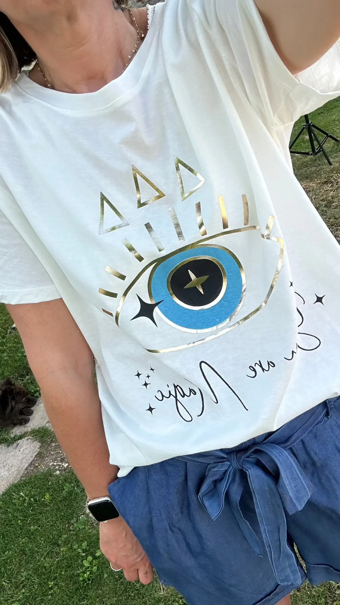 Adopte un Look tendance et intemporel avec notre Tee-shirt imprimé Oeil « Sofia » protecteur. Il offre une coupe normale qui s’adapte à toutes les silhouettes.