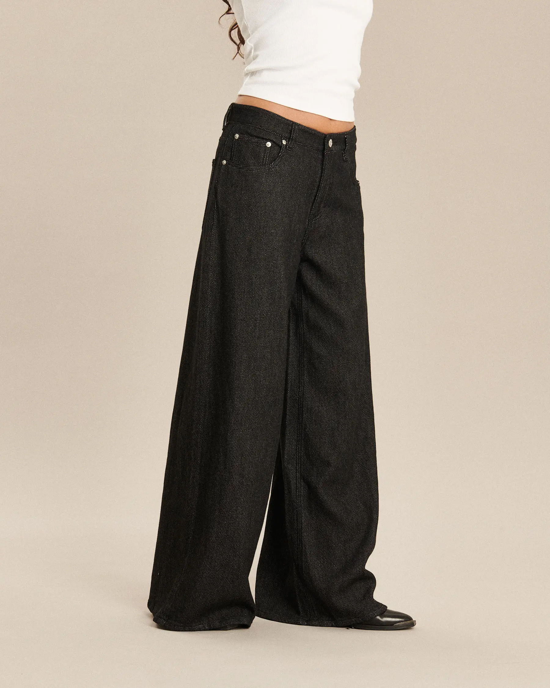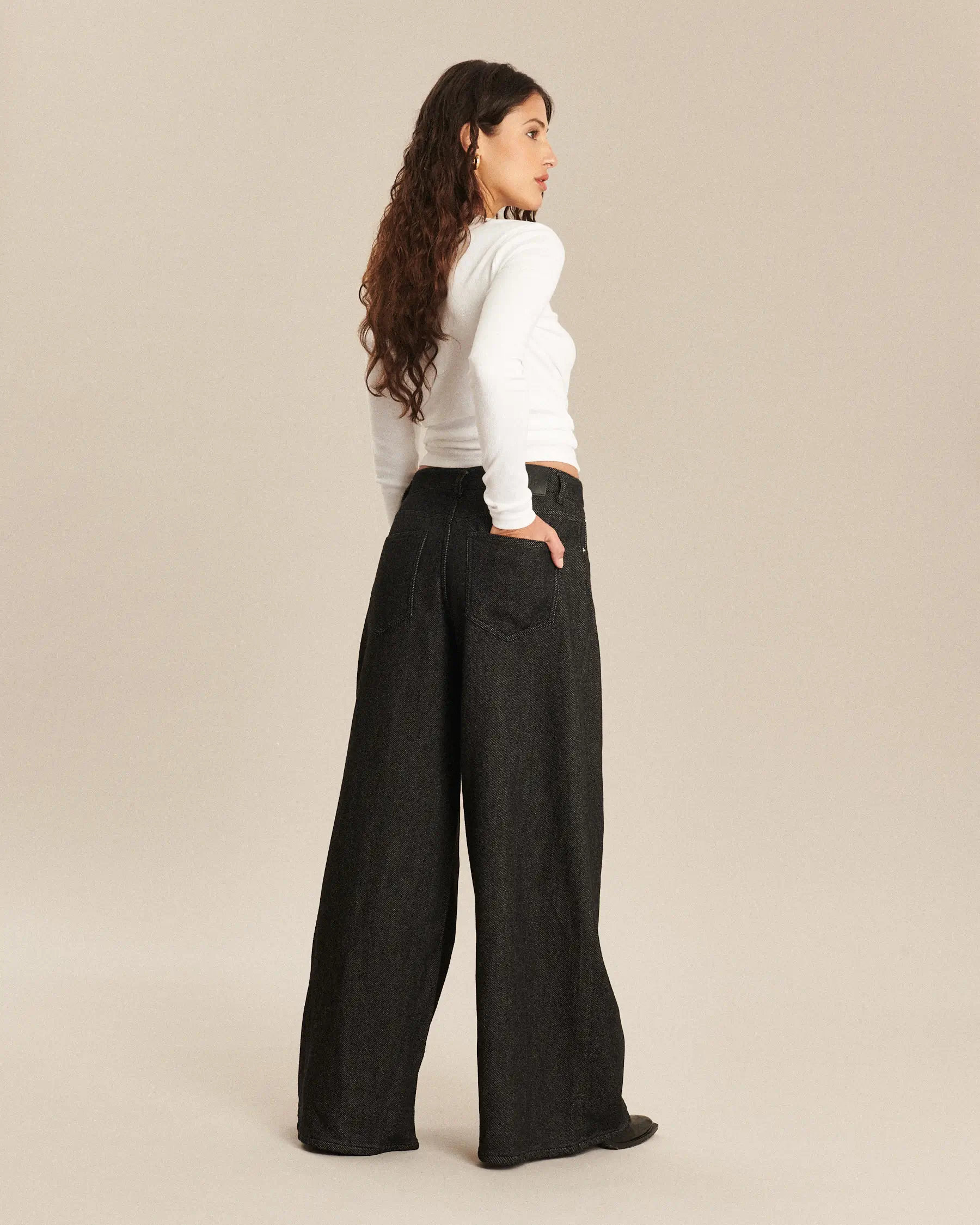 Ce DENIM WIDE LEG habille et stylise à lui seul toute la silhouette.